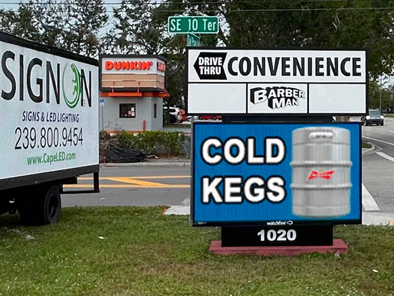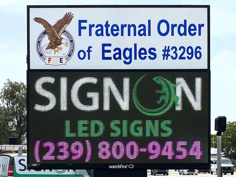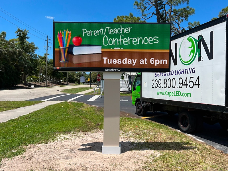 Sign On LLC is the leading installer and service technician of LED Signs in SWFL. As a proud dealer of Watchfire LED Signs—the ONLY digital sign built specifically for Florida—we offer unmatched quality and reliability. On paper, all LED signs may look similar, but in reality, there is a drastic difference. If you’re looking for the ultimate LED buying guide, contact us for a FREE Quote and FREE In-Person Product Demo. We’ll bring our digital sign truck to your business so you can explore various models firsthand and discover which is right for you—and why our signs are eons beyond the competition.
