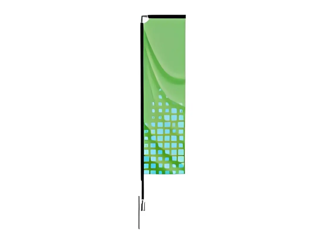 A feather flag is a 6 ft. tall to 20 ft. tall flag that is used to advertise a company and draw attention to an event or business. Indoor or outdoor use.